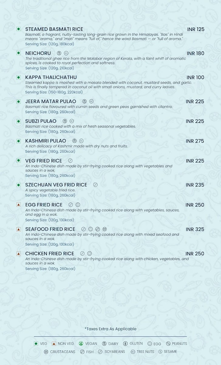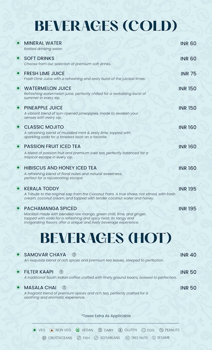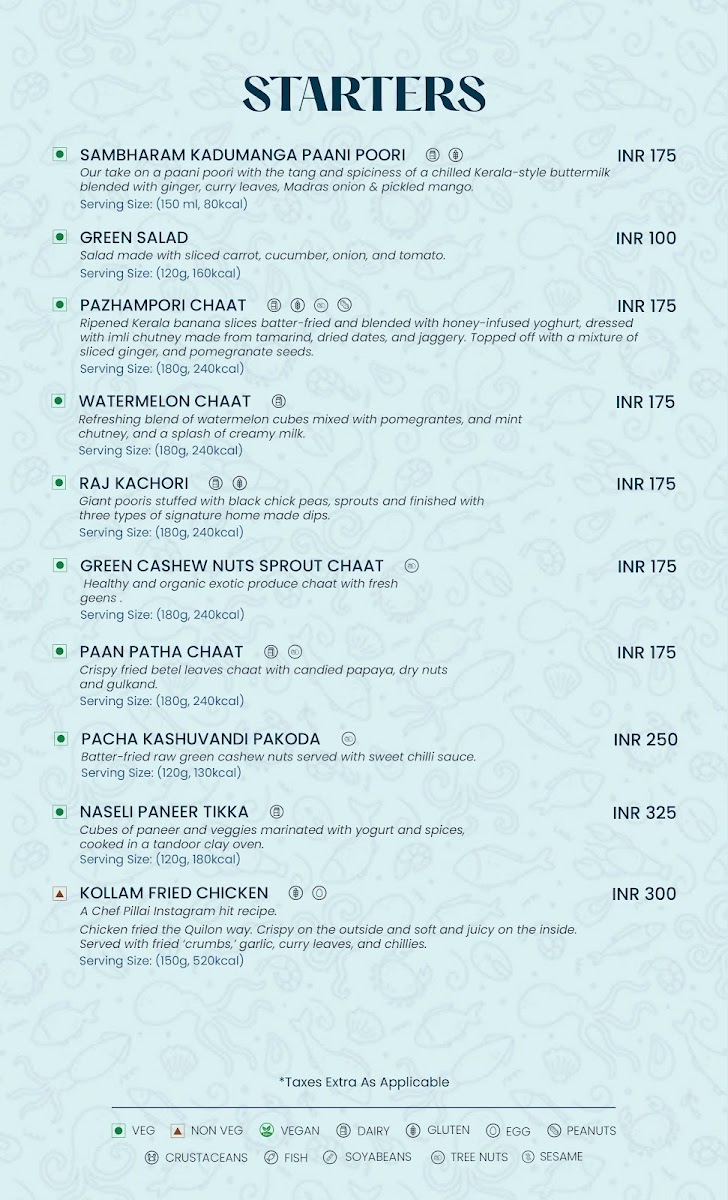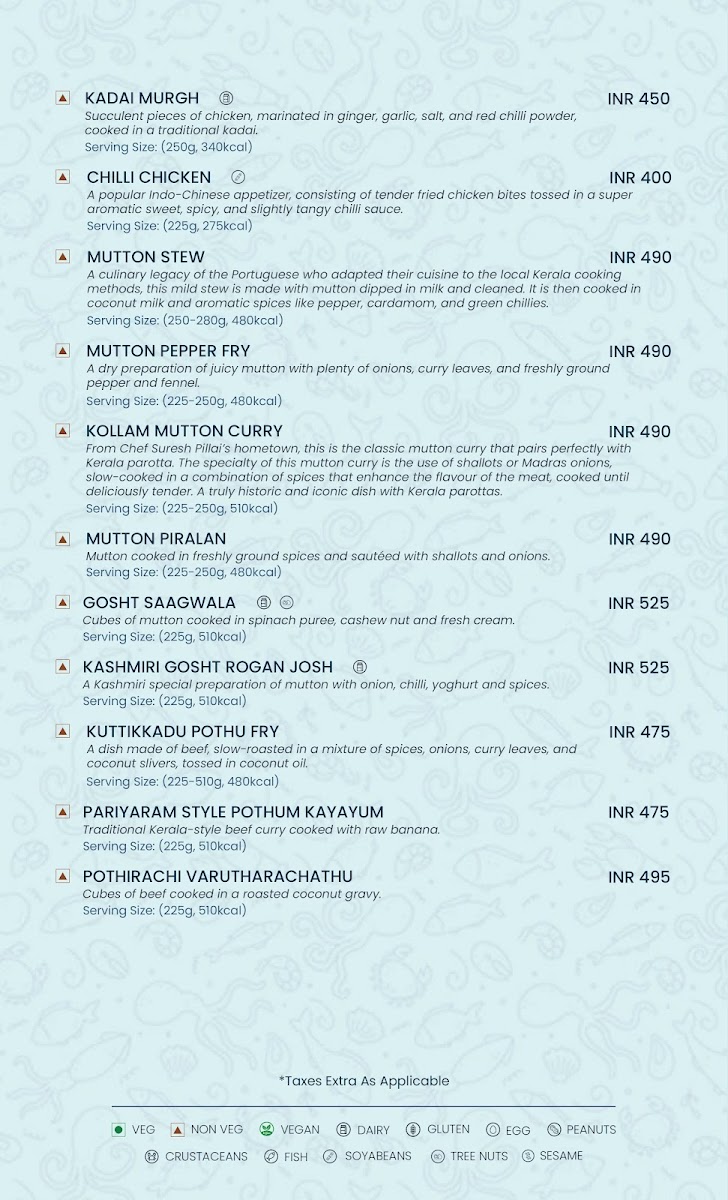 The menu at Meen by Chef Pillai presents a thoughtful blend of traditional Kerala flavors and refined South Indian specialties. It offers a range of dishes that blend the comfort of family dining with the touch of fine dining, inviting guests to enjoy meals in a relaxed yet elegant setting.